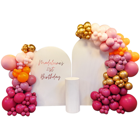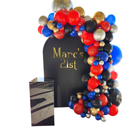 2 x 1.5 meters tall light up numbers with a 3.5 meter balloon garland (plain colours only)