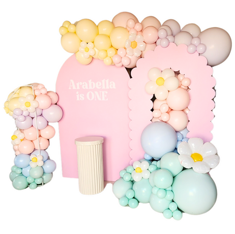 4 Meter Custom Coloured Balloon Garland with Daisy's (these can be changed to suit another theme)